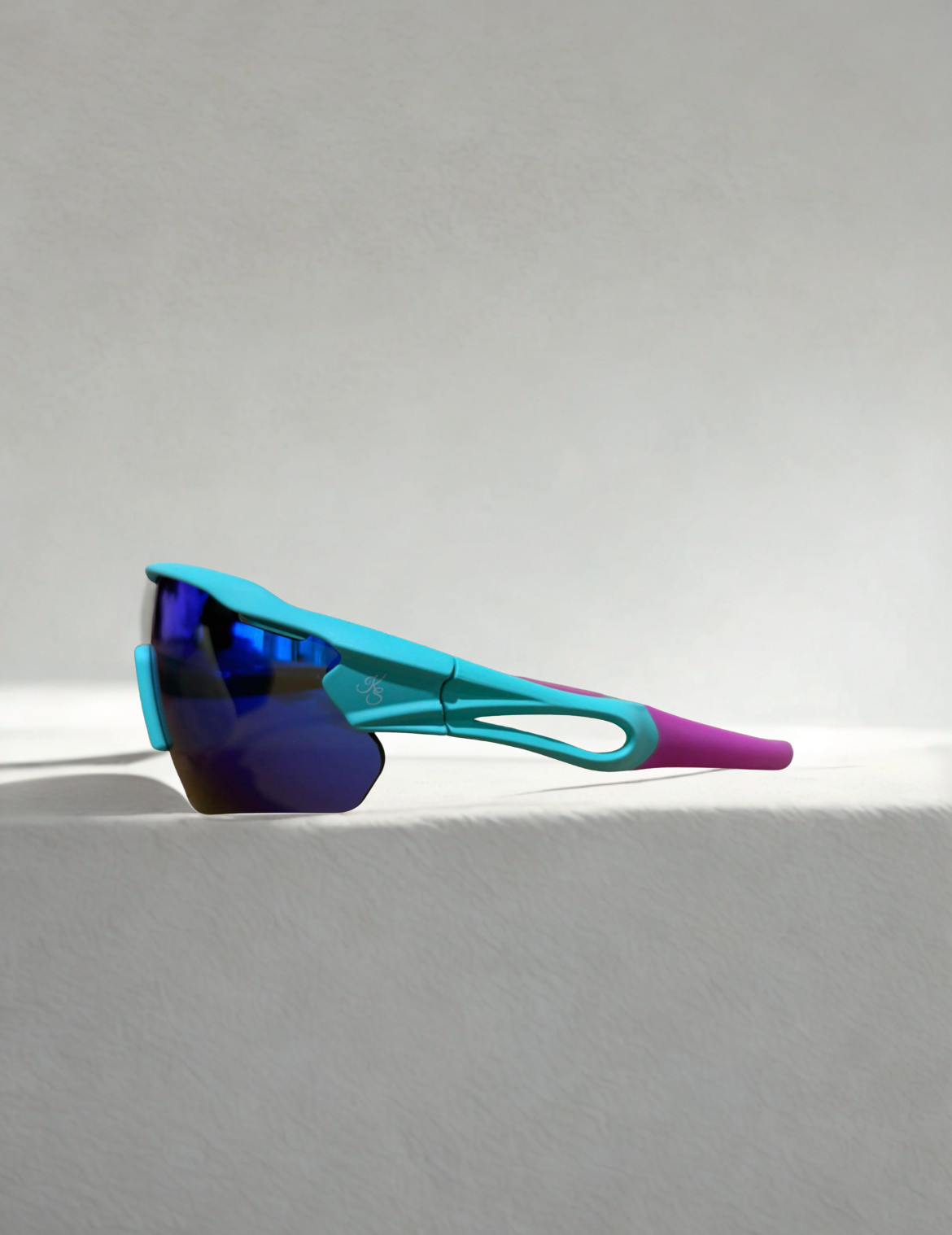 Built for intensity, designed for flair. The All In Shades are your go-to for high-performance style—whether you're mid-match under blazing sun or soaking up rays off-court. With a vibrant teal and violet frame, sleek wraparound fit, and blue mirrored lenses, these shades don’t just block UV—they block distractions. Lightweight, impact-resistant, and made to move with you, they’re perfect for players who show up with purpose and play all in.
