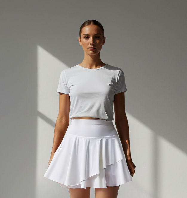 The Rally Skort features a flowy tiered hem that moves beautifully with every step, paired with a smoothing high-waist fit for comfort and confidence. Made from a breathable polyester–nylon blend with quick-dry and anti-UV properties, it’s designed for warm days, long rallies, and everyday lifestyle wear.